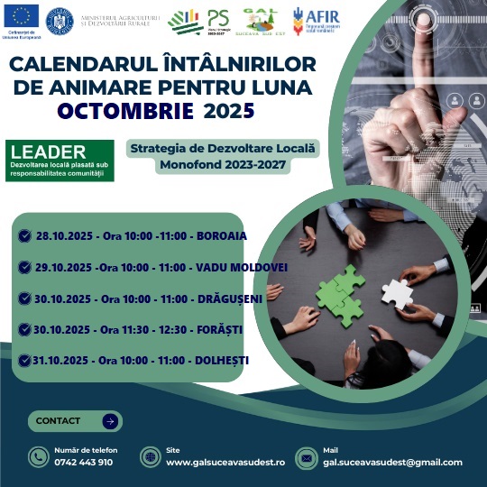 Asociația Grupul de Acțiune Locală Suceava Sud-Est organizează o serie de întâlniri de animare în preambulul apelurilor de selecție, în comunele din teritoriul nostru.