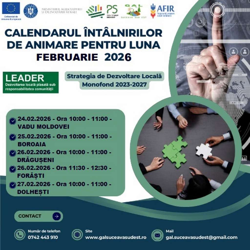 Asociația Grupul de Acțiune Locală Suceava Sud-Est organizează o serie de întâlniri de animare în preambulul apelurilor de selecție, în comunele din teritoriul nostru.
